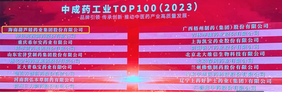 会上,还发布了“2023中成药工业TOP100”榜单,泛亚电竞药业集团荣耀上榜。